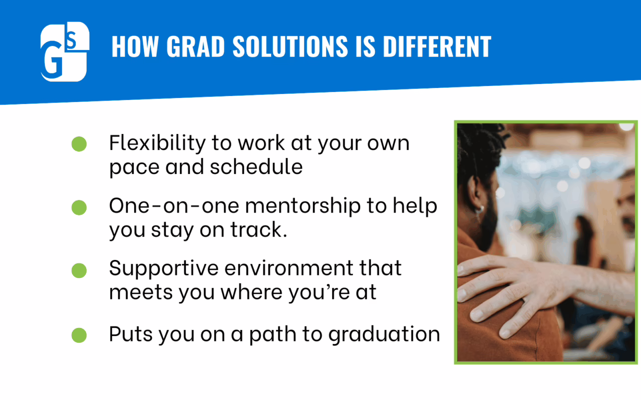 Choosing a judgment-free, supportive school like Grad Solutions can help you take control, move forward, and earn the diploma you deserve. Because graduation isn’t just about finishing high school — it’s about proving to yourself that you can overcome challenges and achieve your goals.