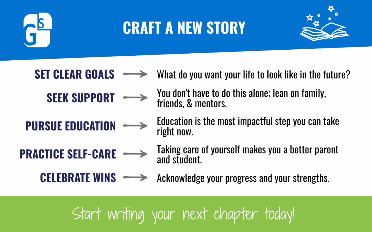 For many of our students, having a child at a young age doesn’t close doors; it often ignites a fierce determination, a profound love, and a clarity of purpose that can propel you to unimaginable heights. There is still time to develop a vision for the future, work toward that goal, and attain your dreams.